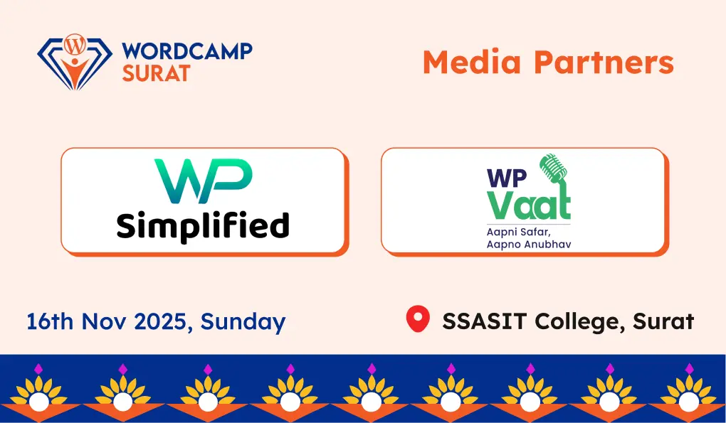 As a Media Partner for WordCamp Surat 2025, WPSimplified continues its journey of sharing, documenting, and promoting the WordPress ecosystem — helping more people learn, connect, and grow with WordPress.
